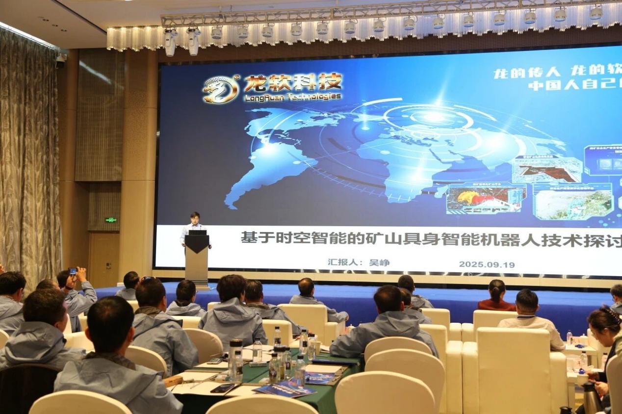 龍軟科技智能裝備技術研究院機器人研究所吳崢博士代表“龍軟科技-北京大學鄂爾多斯能源研究院團隊”作《基于時空智能的礦山具身智能機器人技術探討》主題報告,以“礦山機器人替人應用場景需求”為切入點,科普了礦山機器人的研究現狀、關鍵技術及發展方向,并結合團隊在人工時空智能與礦山機器人研究領域的實踐經驗,介紹了龍軟時空大模型技術特點,闡明時空智能與具身智能機器人的深度融合方法,探討了礦用機器人技術在采掘、巡檢等礦山場景中的應用前景。