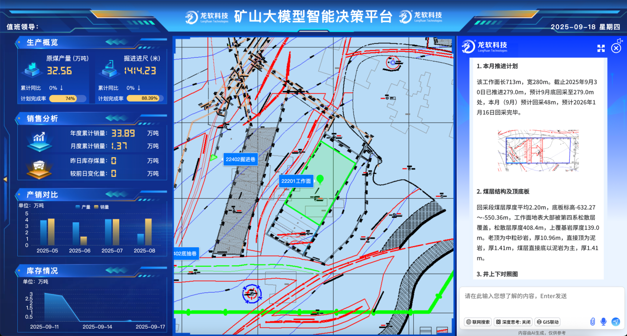 龍軟時空大模型1.0(Loong Model 1.0)是基于團隊多年在地理信息、時空智能、工業互聯網、大數據等領域的技術積累,研發推出的首個工程領域,特別是礦山工程領域人工時空智能大模型及應用系統。通過自研的矢量圖形大模型、面向視覺的智能分析模型等,以礦山等行業為應用場景,通過知識訓練、私域知識和經驗學習,實現對多源多模態數據的實時分析和深度理解,破解礦山領域矢量處理困難、行業知識融合不足、流程管控復雜等痛點,提供與安全生產全生命周期相關的“智能設計、智能問答、智能問數、智能看圖、智能分析決策”等應用。最終通過“時空感知-精準決策-高效執行”的新模式,推動人工智能與礦山領域從“淺層結合”邁向“深度融合”,讓AI從“讀懂文字”升級到“看懂圖形”,從理解語言走向洞察空間,解決了目前大預言模型無法滿足工程領域矢量圖形處理的重大需求。
