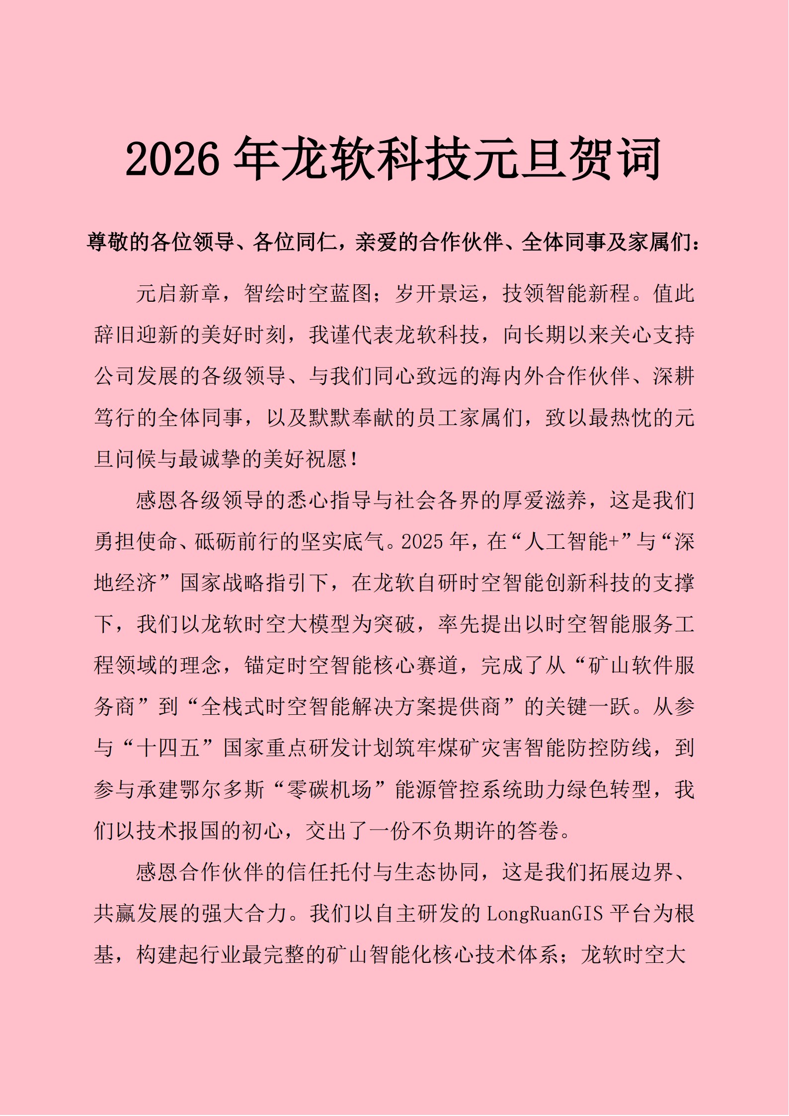 面向2026年,公司將重點(diǎn)推進(jìn)三大戰(zhàn)略:(1)加速時(shí)空智能等創(chuàng)新業(yè)務(wù)在多領(lǐng)域(礦山、水利、交通、建筑……)的落地,加快龍軟時(shí)空大模型2.0、“龍軟智圖GIS+CAD”云服務(wù)擴(kuò)展功能和系統(tǒng)的研發(fā)進(jìn)程,強(qiáng)化多模態(tài)處理與跨場(chǎng)景適配能力,向通用工程領(lǐng)域全面推進(jìn);(2)深化訂閱制模式,完善“技術(shù)-服務(wù)-生態(tài)”體系,提升客戶黏性;(3)加大“一帶一路”沿線國家市場(chǎng)拓展力度,推動(dòng)核心產(chǎn)品規(guī)模化出海。同時(shí),持續(xù)深化與高校、龍頭企業(yè)及大模型生態(tài)伙伴的合作,以更開放的姿態(tài)構(gòu)建時(shí)空智能多元化產(chǎn)業(yè)生態(tài)。