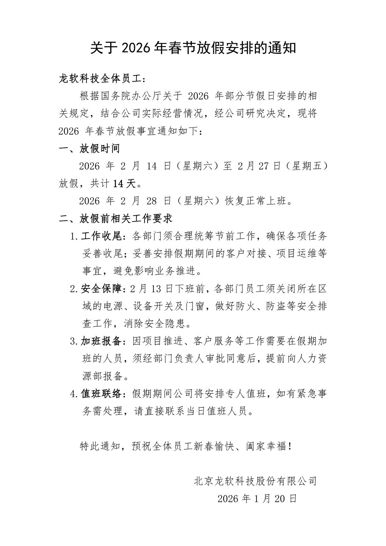 關于2026年春節放假安排的通知