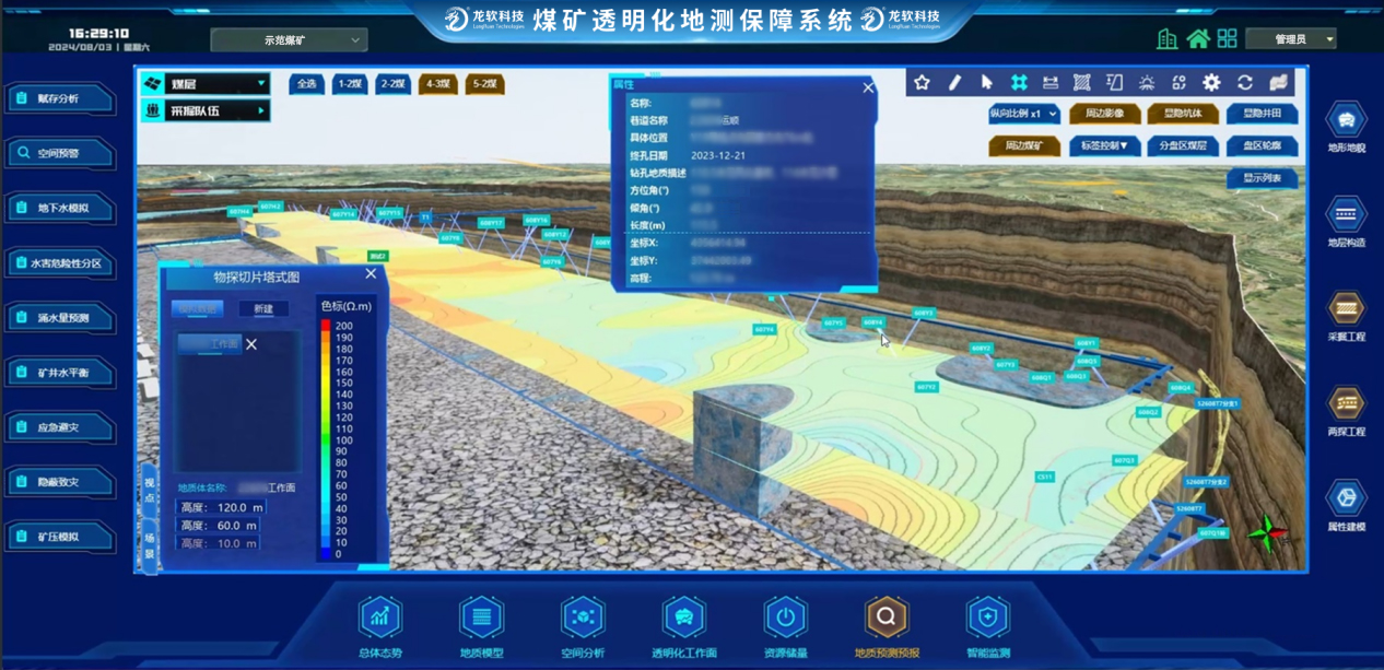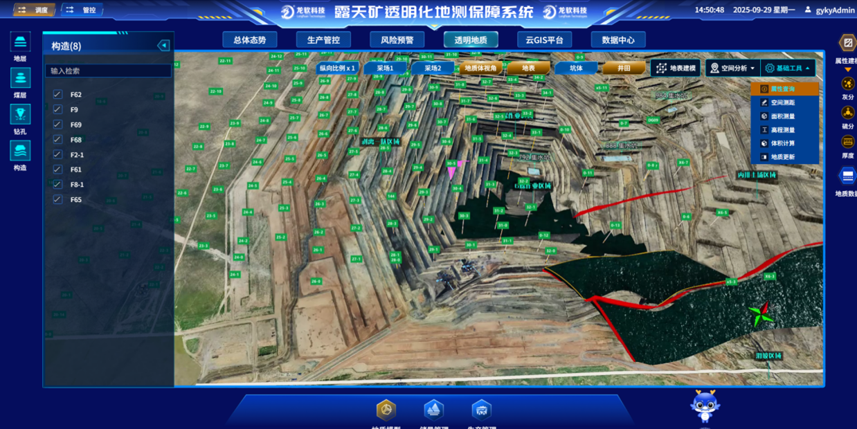 該平臺實現了數據、圖形和模型的一體化處理,支持煤礦地質、測量、通防、機電、生產等專業自動成圖、同步建模和時空信息的高度共享和動態處理,有效破解了長期困擾行業的包括地質建模與更新在內的“卡脖子”關鍵技術難題。系統兼具的技術先進性與場景實用性,創新實現了時空信息云服務,在實現時空信息云服務的同時,深度融合了龍軟科技多年積累的煤礦GIS專業化應用成果,不僅全面推動了礦山安全生產業務的數字化轉型,更以高精度三維模型為支撐,為煤礦智能采掘、智能通風和災害預警提供了堅實的技術底座與可視化決策平臺。